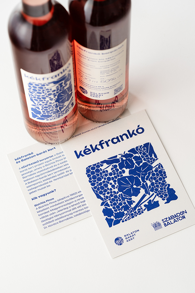 A KÉKFRANKÓ borpárlat a Balaton-Barát Kert projekt egyik limitált különlegessége. A projekt természetvédelmi szempontú, kisléptékű kert- és területművelési lehetőségeket mutat be, hozzájárulva a balatoni táj és a fenntartható szőlőművelés megőrzéséhez.