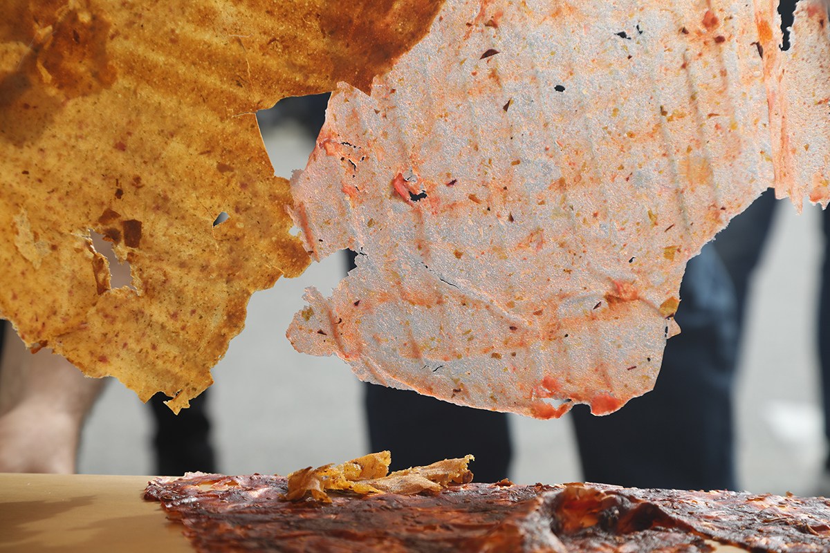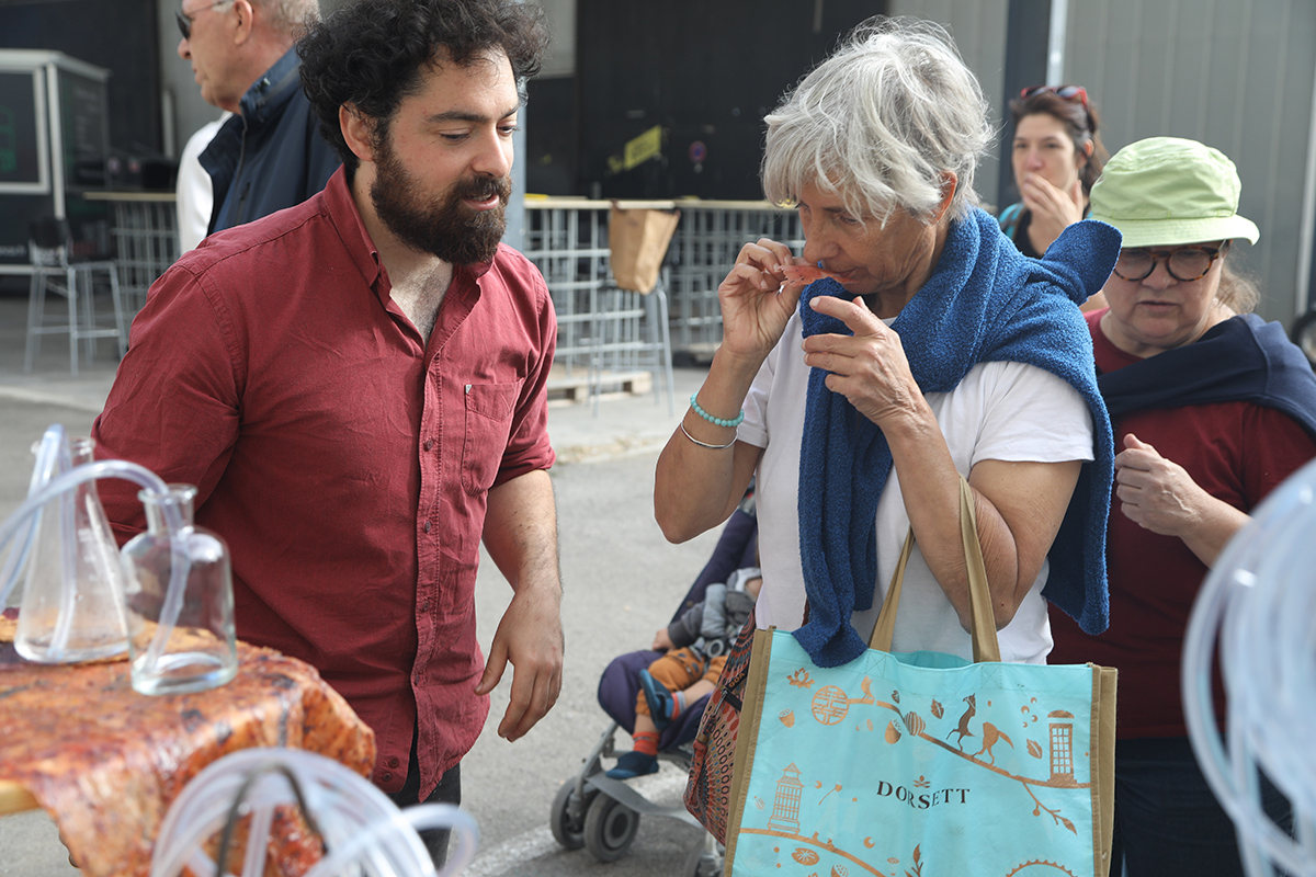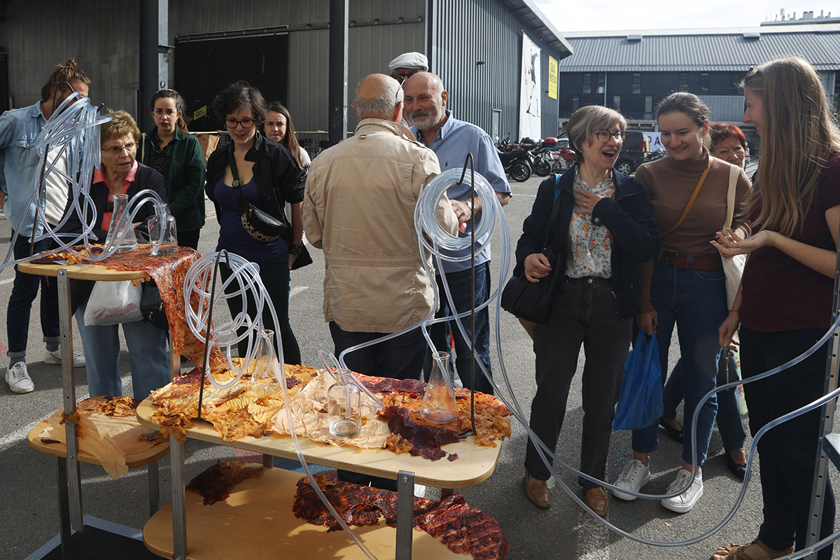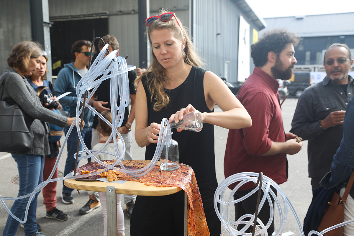 Az Aygalades patak szellemét, egy monstrumot idéztünk meg, ahol a patakkal kapcsolatban álló marseillei városrészek kiszáradt növénytest-szövetét és az őket összekötő folyómedreket és csatornákat rituálisan újravízesítettük. A környék gyümölcseiből és zöldségeiből készült növénybőrök és víztestek ehető installáció formájában újrakapcsolódnak, majd közösségileg elfogyasztása kerültek. Az állatok levágására emlékeztető rehidratáció folyamatában a patak vizével hidratáltuk magunkat is.