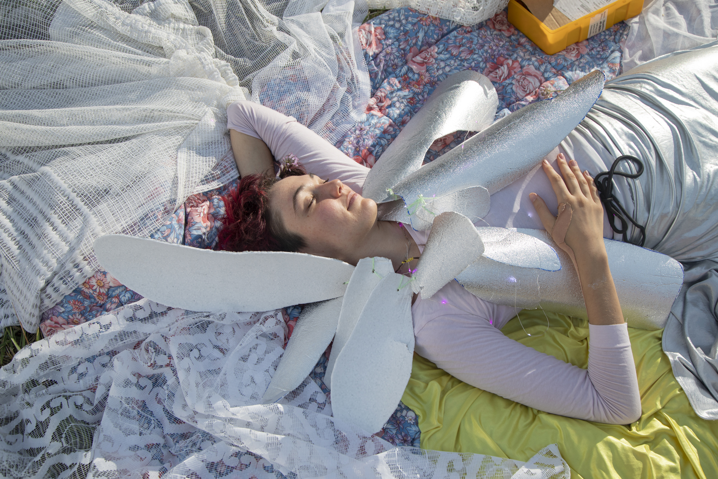 Grazing animals visibly shape the vegetation with their movements, trampling and grazing, but they also connect areas almost imperceptibly by seeds, leaves and stalks clinging to their bodies or transporting plant propagules several kilometres away through their excrements. SLOWERALL is the seed and plant collection suit of szabadonbalaton and textile designers Mária Schuller and Borbála Vértesi, which will carry the landscape print of the area they walk through together, as the grazing animals do.